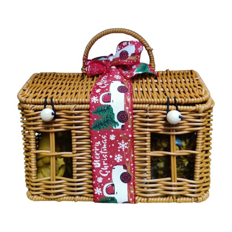 🎁 Karácsonyi Mézes Ajándékcsomag – Különleges válogatás egy hangulatos „kosár” dobozban