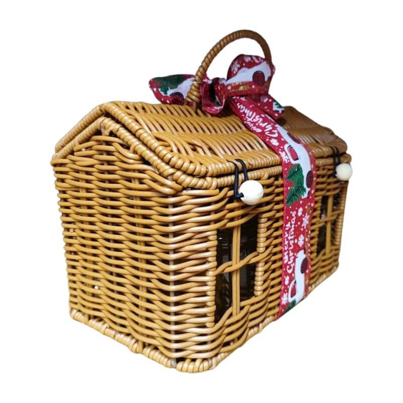 Lepd meg szeretteidet egy igazán egyedi, kézműves ajándékkal! Ez a különleges, kosár hatású – mégis tartós, műanyagból készült – díszdoboz egy gazdag mézes összeállítást rejt, amelyben mindenki megtalálja a kedvencét. A csomag látványos karácsonyi díszszalaggal és ünnepi hangulattal érkezik, így készen áll arra, hogy bárkit elkápráztasson.